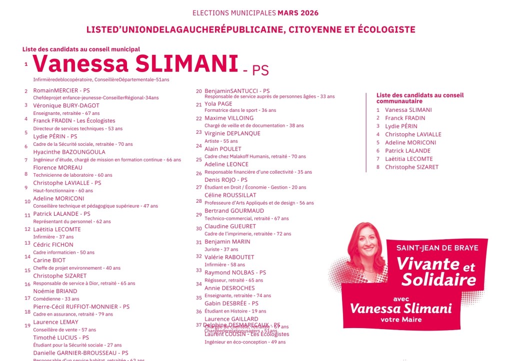 C’est avec une émotion particulière et un engagement sans faille que je m’adresse à vous aujourd’hui pour vous annoncer ma candidature aux fonctions de maire de Saint-Jean-de-Braye, aux élections municipales des 15 et 22 mars 2026.